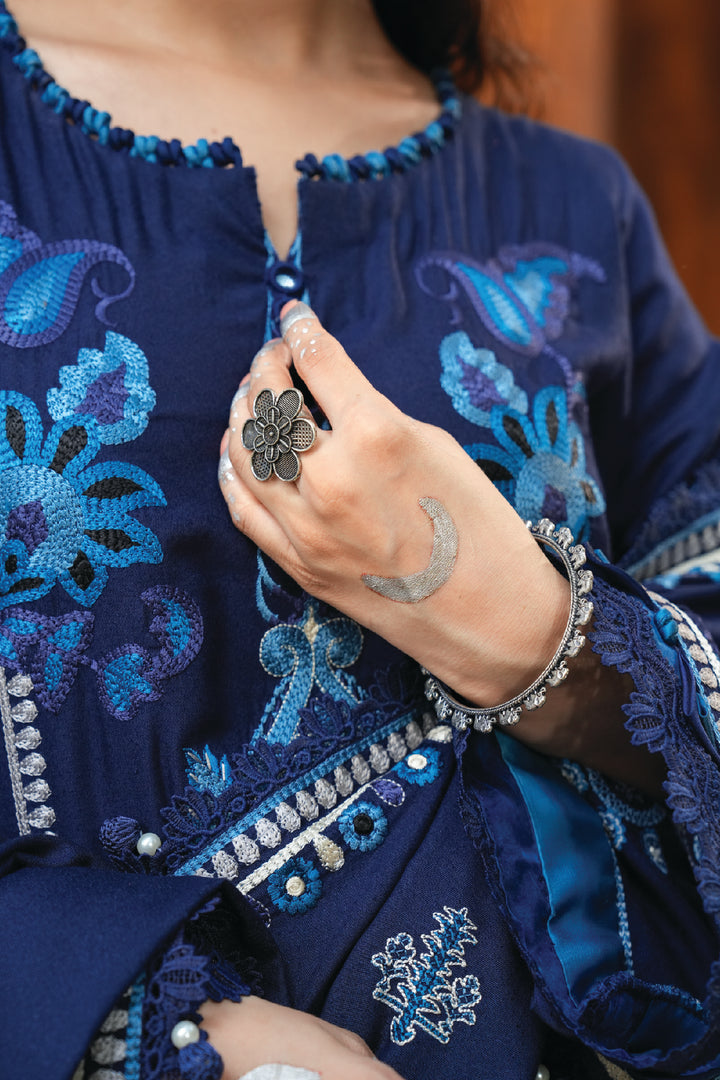 3 Piece Embroidered Karandi Unstitched - ZC-725-37-Blue