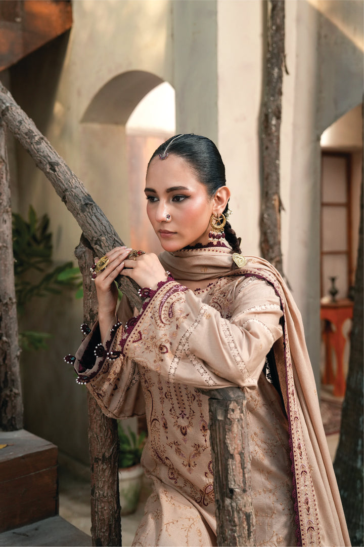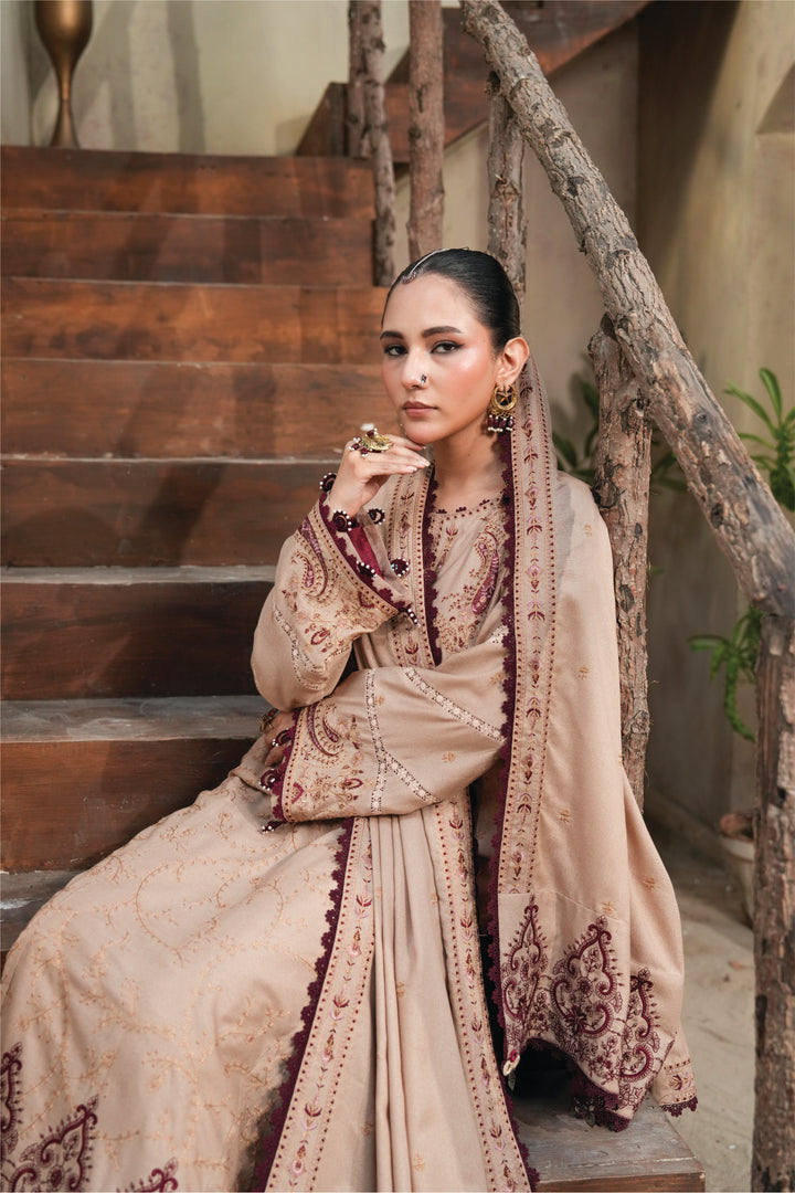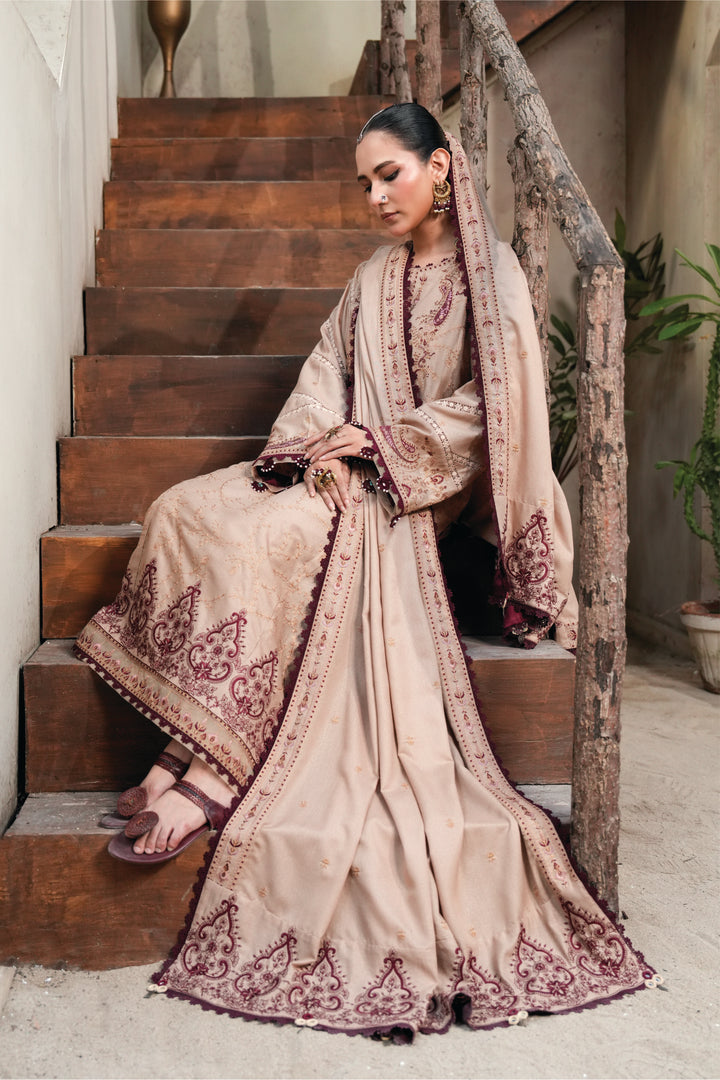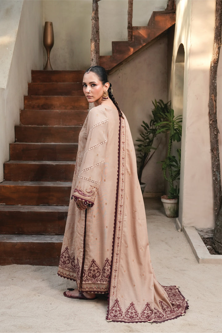3 Piece Embroidered Karandi Unstitched - ZC-725-38-Beige