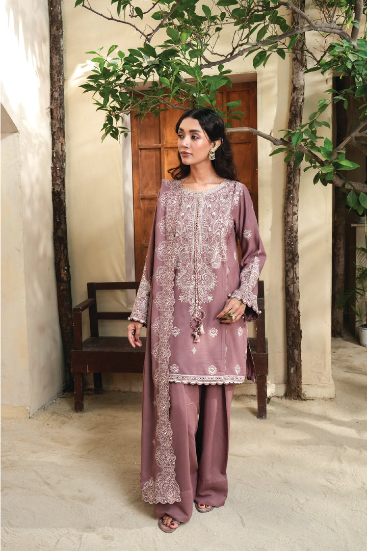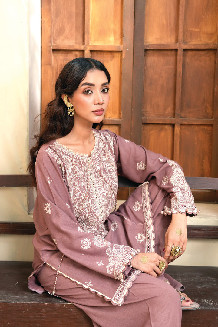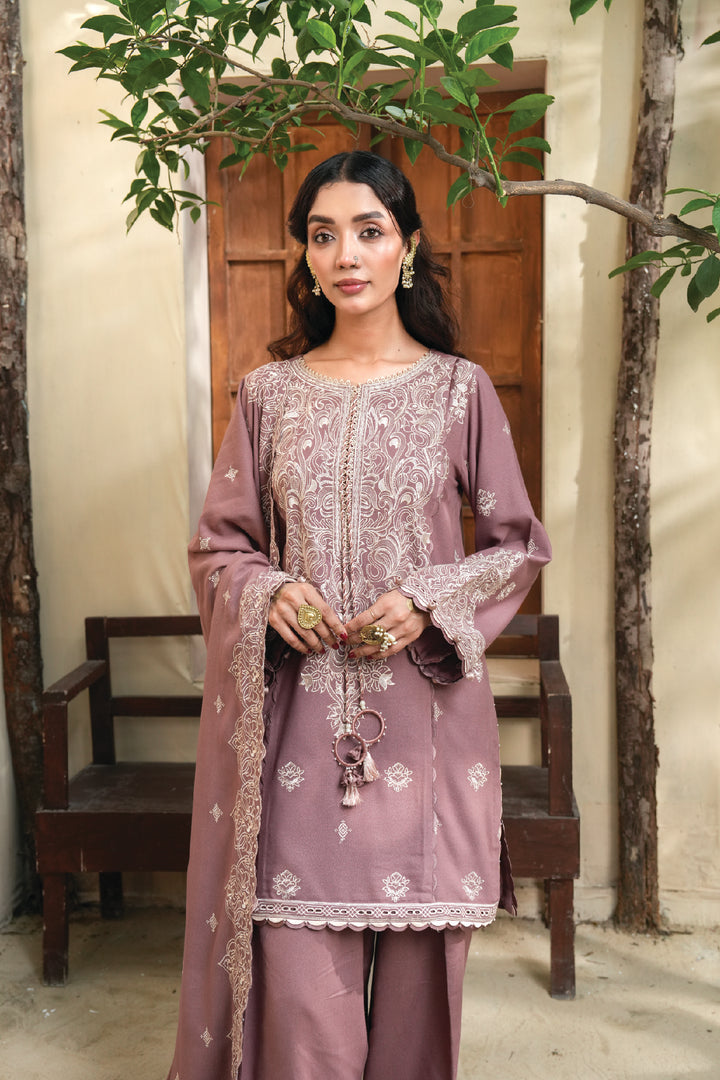3 Piece Embroidered Karandi Unstitched - ZC-725-40-Mushroom